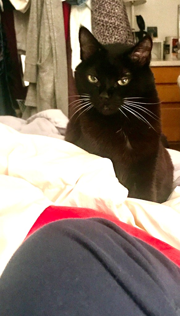 I wasn’t pet sitting when I moved in. It was Covid times. Brenda and I quickly bonded. She spent days in my room, wondering out for her meals and back in to sleep at the end of the bed at night. Bob lives on the 2nd floor, I live on the 3rd. Brenda still went down to spend time with him. He fed her and kept the litter box down there.