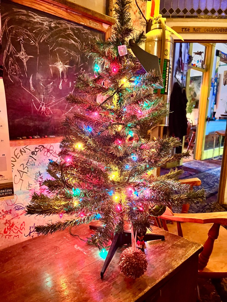 Here at the 120 year old hotel where I live, housemates have been busy decorating for the season. The three story brick building built in 1902 has housed many creative folks. Some of the artist’s creations remain. It’s fascinating and funky.
